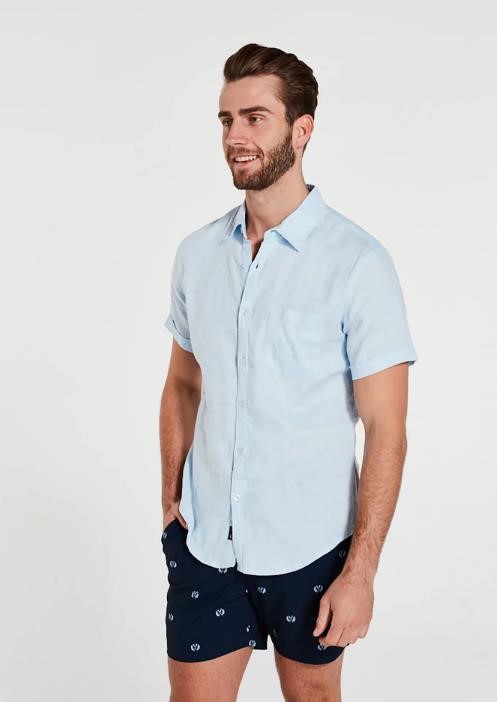 COAST Men`s S/S Shirt, Size 2XL, 100% Linen, Sky Blue, 111329. NB: minor stain. (Code: 18CCC401-SB-2XL-S) (332135-28)