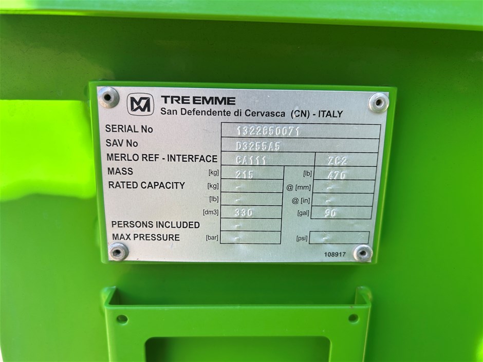 • Attachments: BucketMass: 215kgdm3: 330Serial Number: 1322850071SAV Number: D3255A5Merlo Ref - Interface: CA111 ZC2