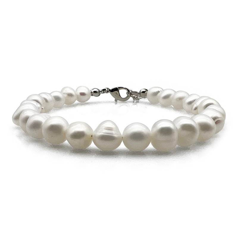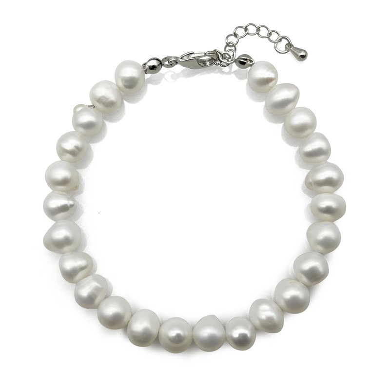 Natural 7-8mm Grade AB White Mix Shape Freshwater Pearl with Real Platinum Plated Bracelet.