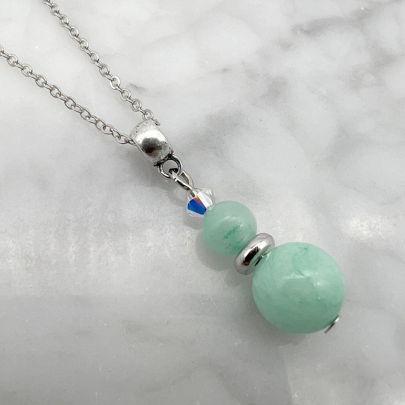 Aqua Malaysia Jade 'Quartz' & Swarovski® Austrian Pendant Necklace