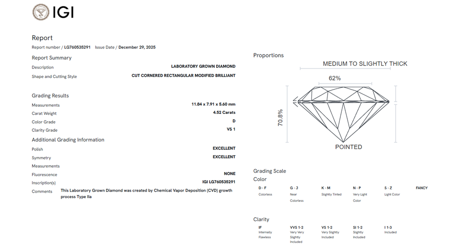 | Part of Sale | IGI Certified Lab Grown Diamonds Collection | ||||