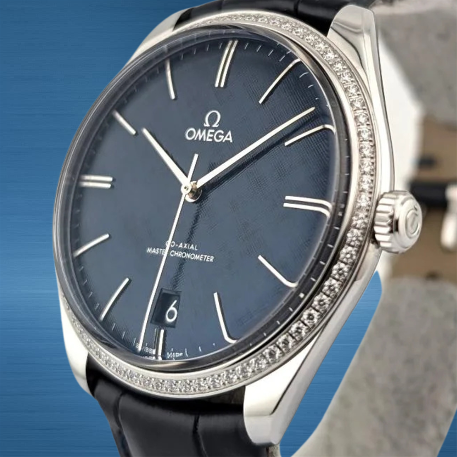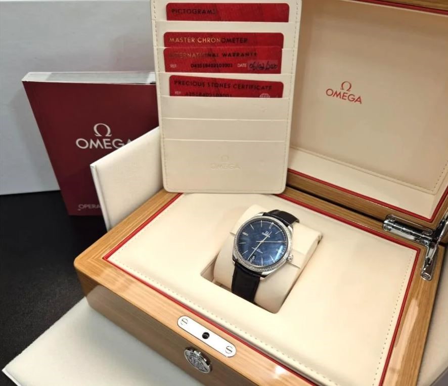 Omega 435.18.40.21.03.001 De Ville Trésor Blue Dial Diamonds 40mm 2020 BxP & COA