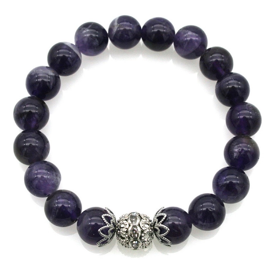 10mm Natural Amethyst Persian Love Rhinestone Necklace, Bracelet & Earring Set.