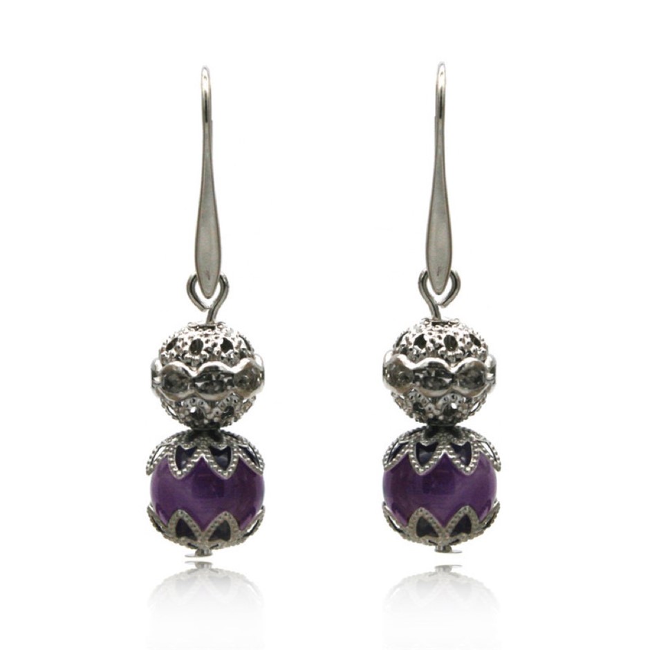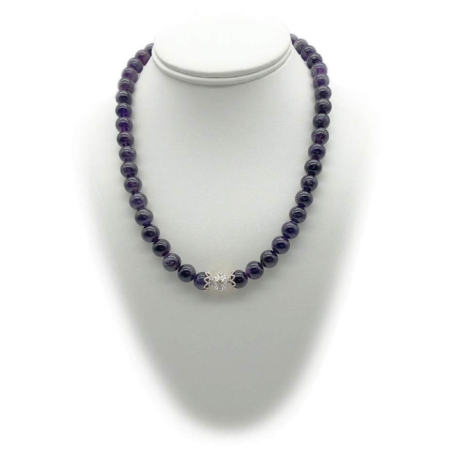 10mm Natural Amethyst Persian Love Rhinestone Necklace, Bracelet & Earring Set.