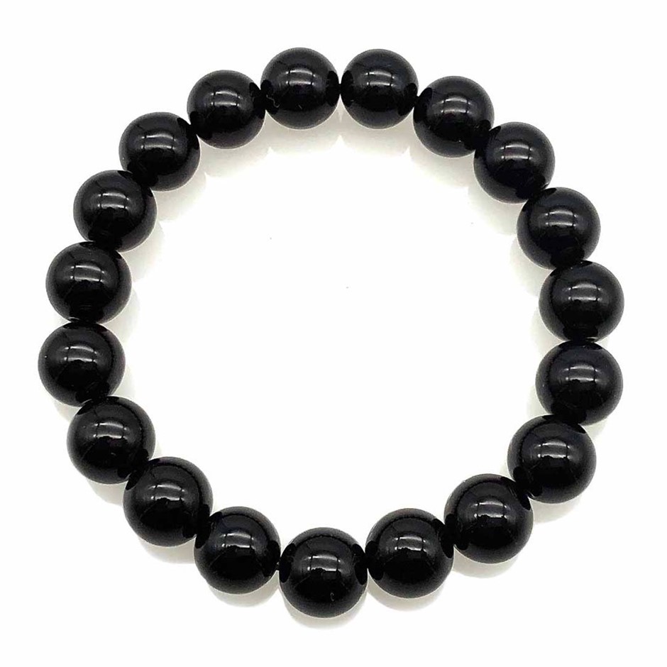 10mm Natural Grade A Black Agate Beaded Stretchy Bracelet