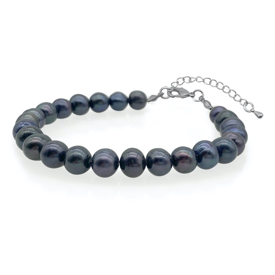 Black 7-8mm Potato Shape Pearl with Real Platinum Plated Bracelet