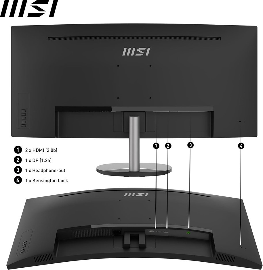 MSI PRO MP341CQ 34`` UltraWide Business Monitor, WUQHD 3440x1440, 1500R Curved, VA, Frameless, 100Hz, 1ms, Tilt Compatible, HDR Ready, 2xHDMI&DP Port, Built-in Speakers, VESA, Black. Buyers Note - Discount Freight Rates Apply to All Regional Areas(Code: B09XZTF1TS) (334556-29)