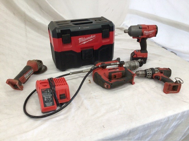 • Including: M18 WDV vacuum cleaner,M18 ONEFHIWF34 3/4” drive impact gun,C18 PD heavy duty drill,M18 GG grease gun,HD18 AG angle grinder,M12-18C battery charger,2 x batteries,