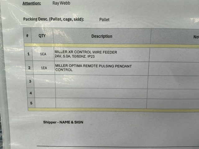Miller XR Wire Feeders & Miller Optima Pendant Control Pallet of