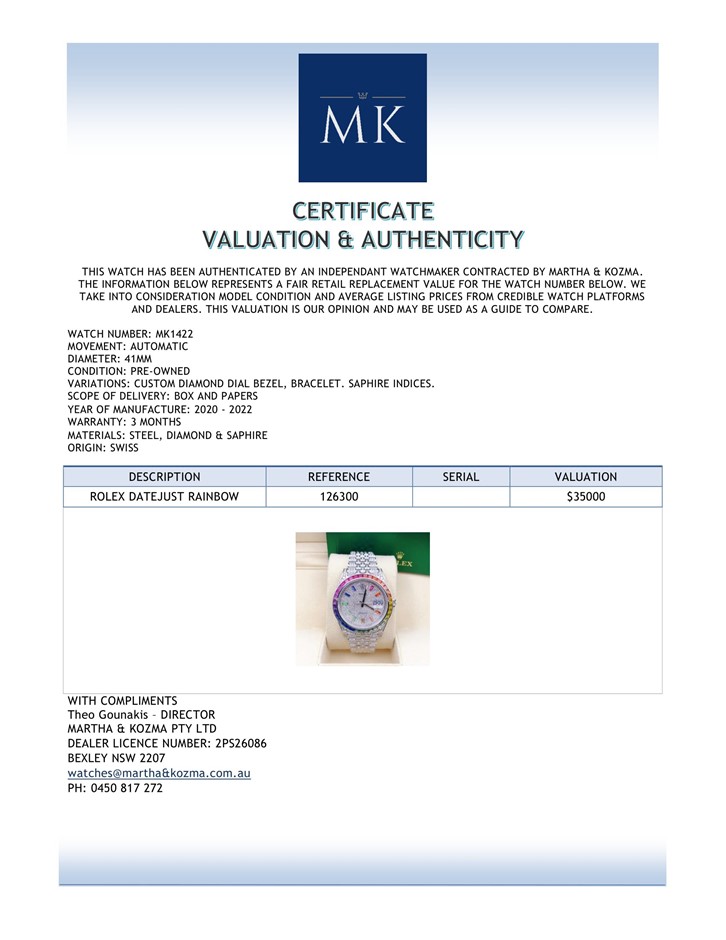 Allow up to 10 Days for delivery - WATCH NUMBER: MK1422