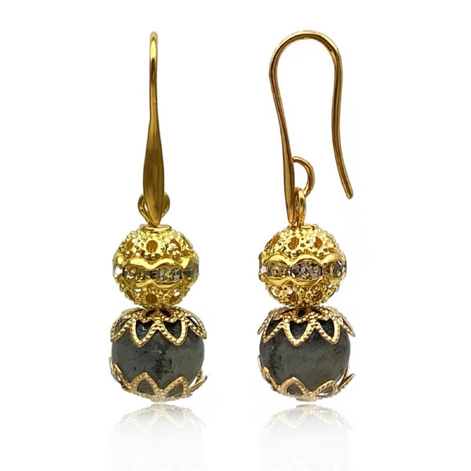 10mm Labradorite Persian Love Gold Plated Rhinestone Jewellery Set
