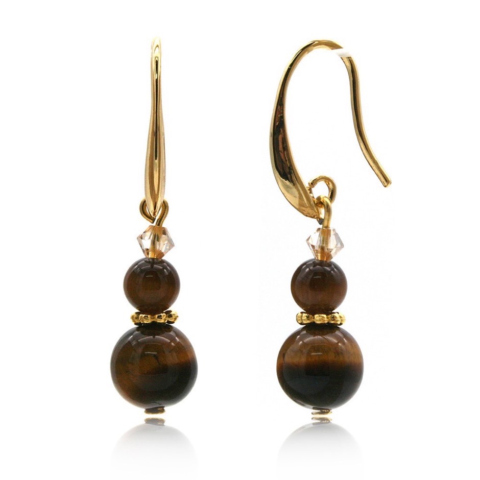 Tiger Eye & Swarovski® Crystal Earrings