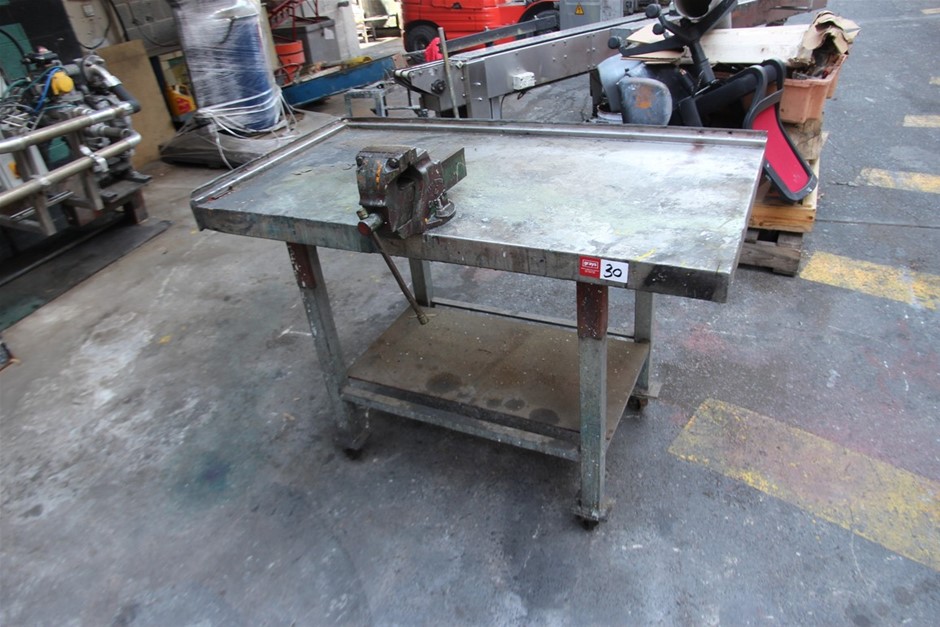Mobile Steel Work Table with Vice