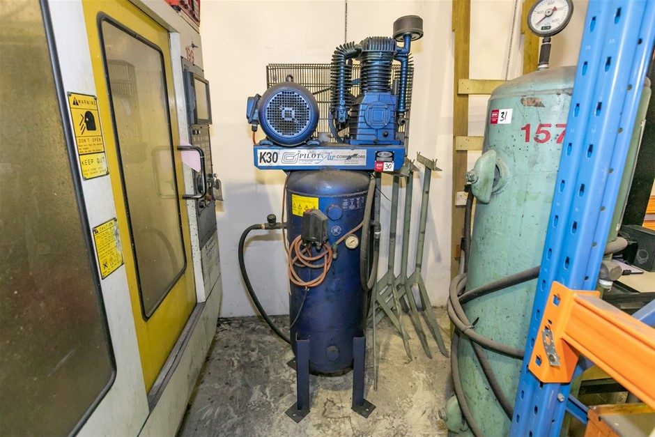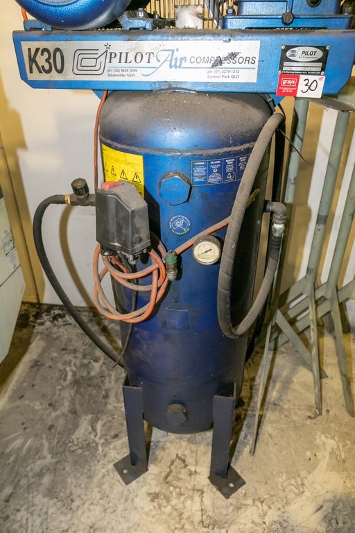Pilot K30 V Air Compressor, Mounted on Vertical Receiving Tank