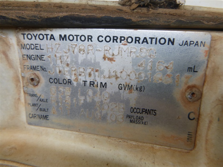 2003 Toyota Landcruiser HZJ78R 4WD Manual - 5 Speed Troop Carrier