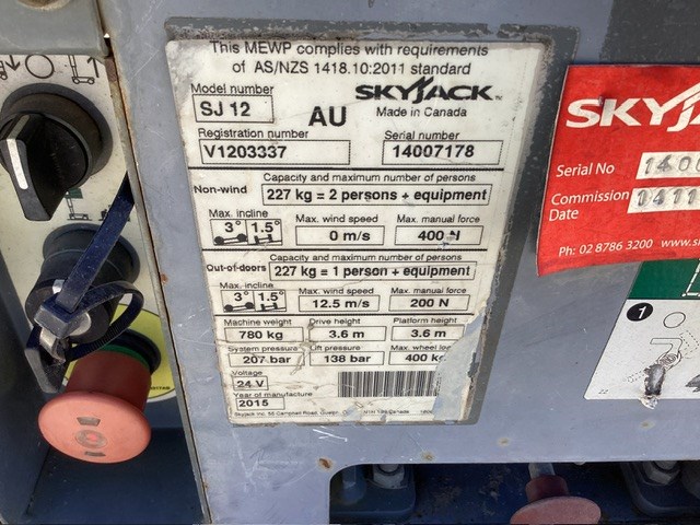 2015 Skyjack SJ12 Vertical Man Lift