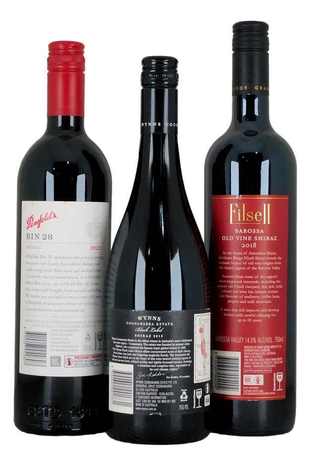 1x 2013 Wynns Shiraz1x 2018 Grant Burge Filsell1x 2022 Penfolds Bin 28 (330355-15)