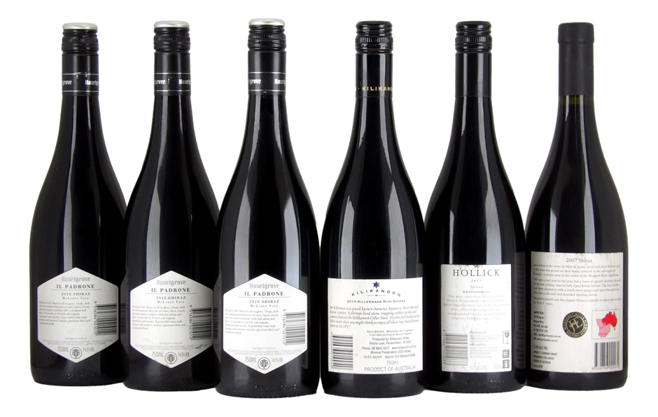 3x Hasselgrove Shiraz Il Padrone McLaren Vale 20181x Hollick Shiraz Wrattonbully 20171x Jarvis Estate Shiraz Margaret River 20071x Kilikanoon Shiraz Killerman`s Run 2010