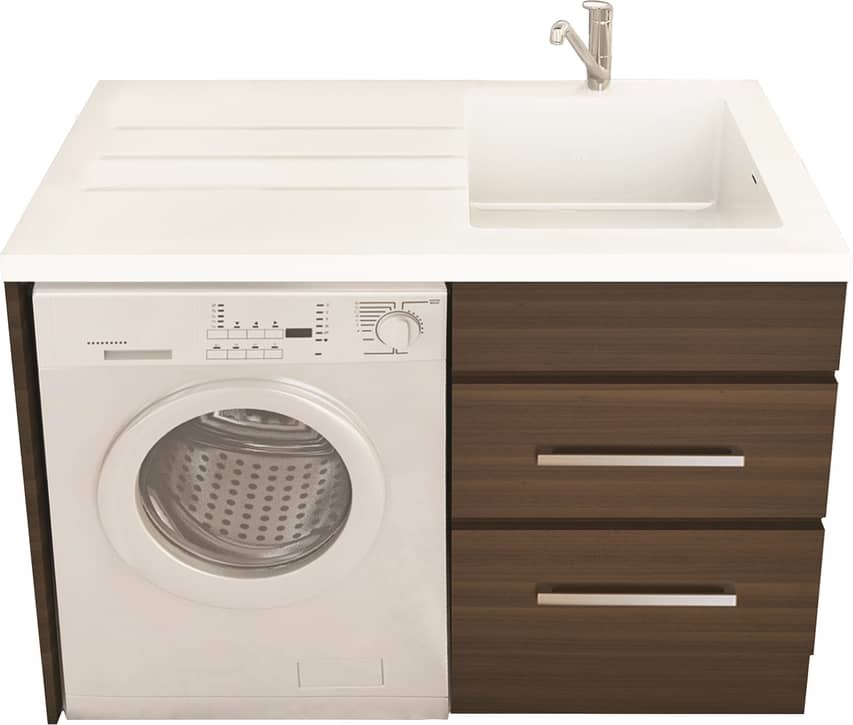 Please Note: Contains cabinet only. Sink, Tap and Washing machine not included. Partial assembly required.