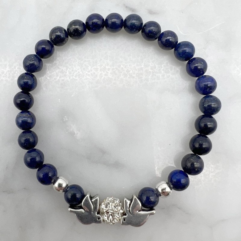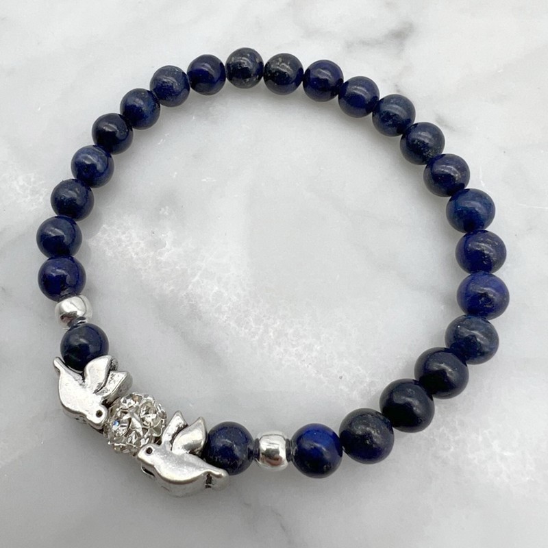 6mm Lapis Lazuli Gemstone and Rhinestone Dove Bracelet