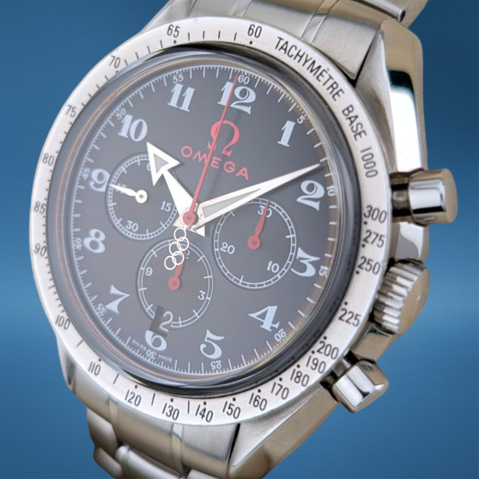 • Movement: Omega Calibre 3303 automatic chronograph with column wheel and Co-Axial escapement