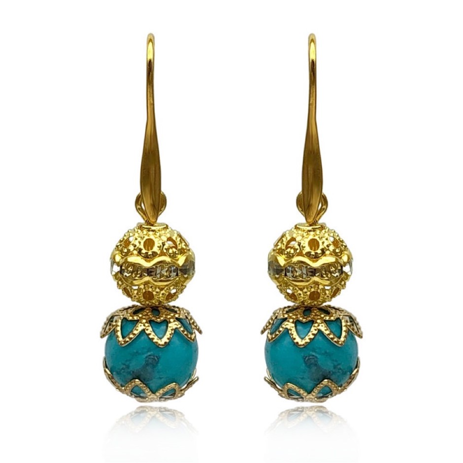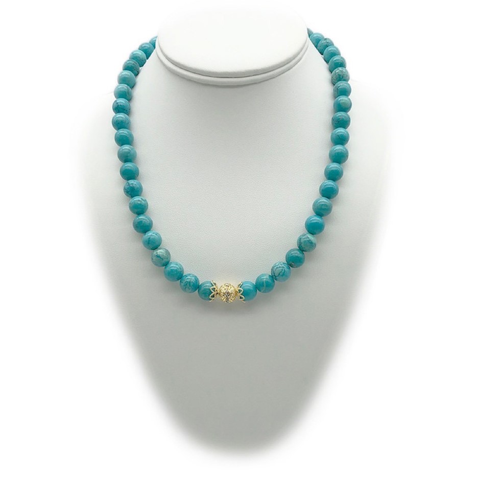10mm Turquoise Persian Love Gold Plated Rhinestone Necklace, Bracelet & Earring Set.