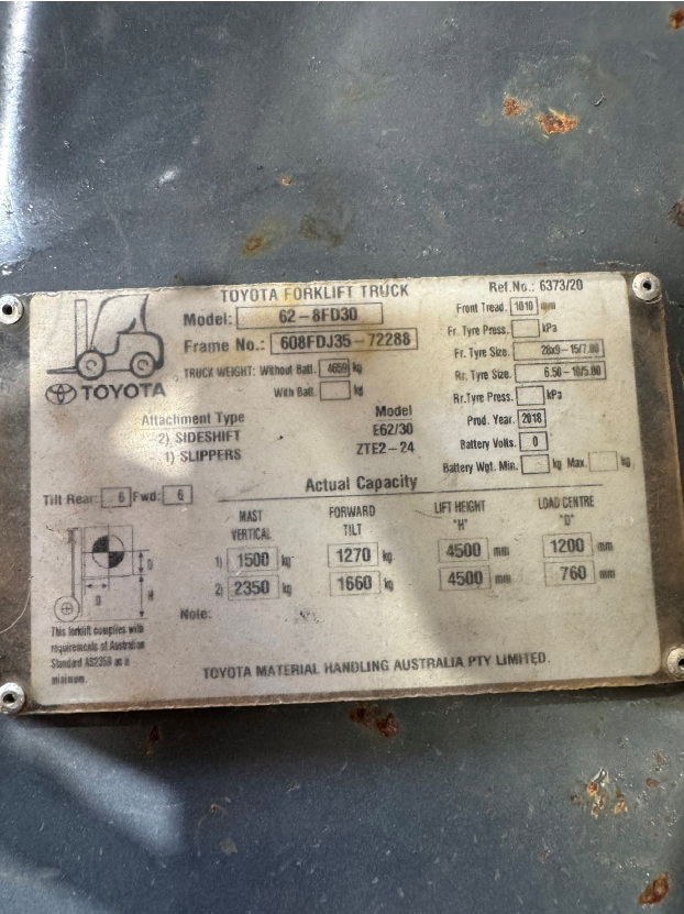2018 Toyota 62-8FD30 4 Wheel Counterbalance Forklift