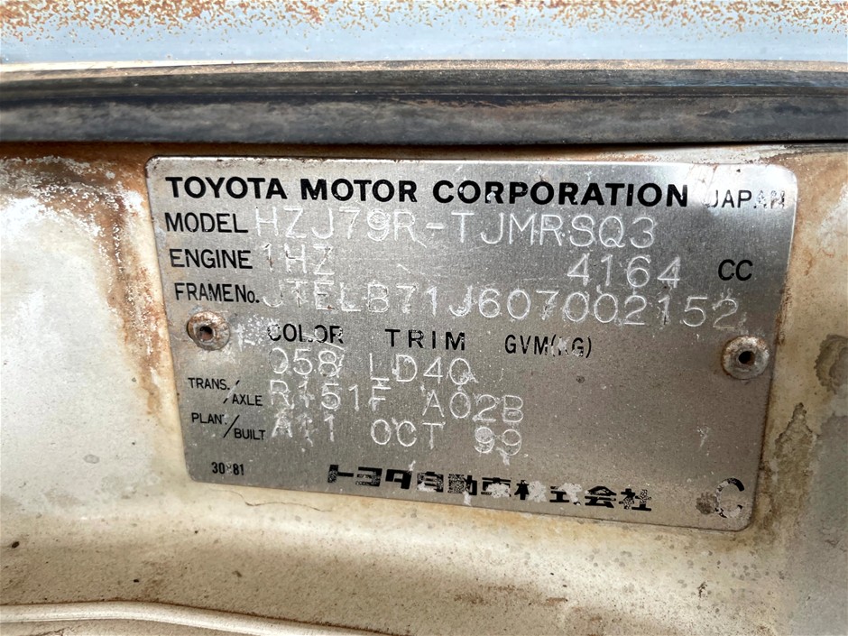 1999 Toyota Landcruiser HZJ79R 4WD Manual - 5 Speed Ute