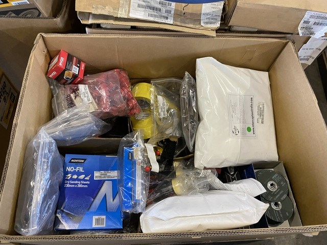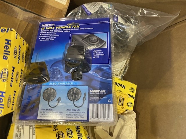• Consisting of 4 Large cardboard boxes containing assorted parts, includes Flextarb silicone heater hoses, Hella spot light housings and parts, UHF antennas, assorted filters and unused parts