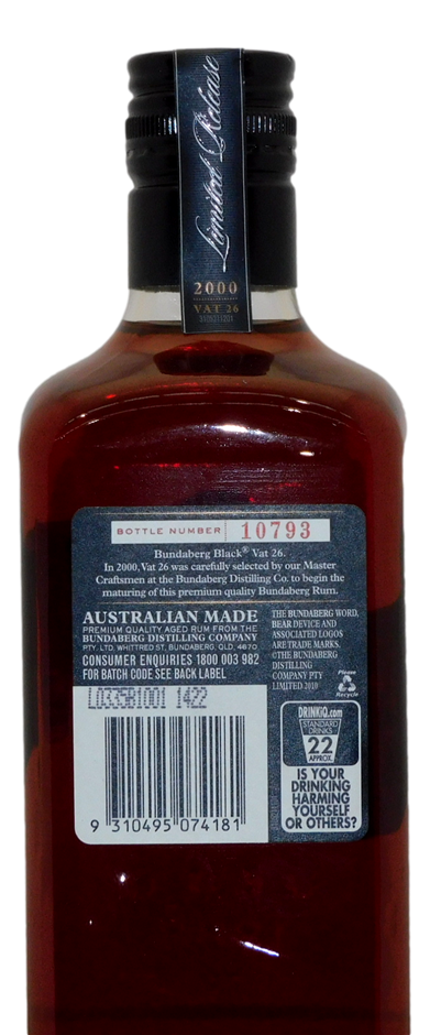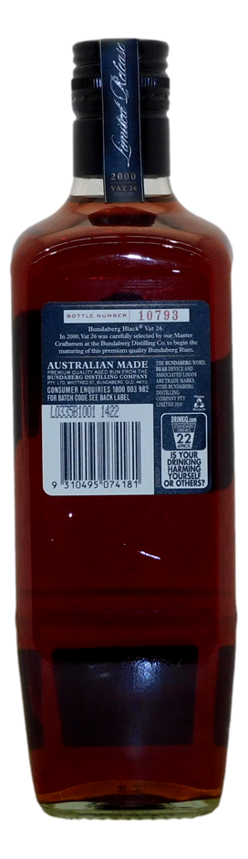 Bundaberg Rum Vat no. 26 Black label 2000 (1x 700mL), QLD