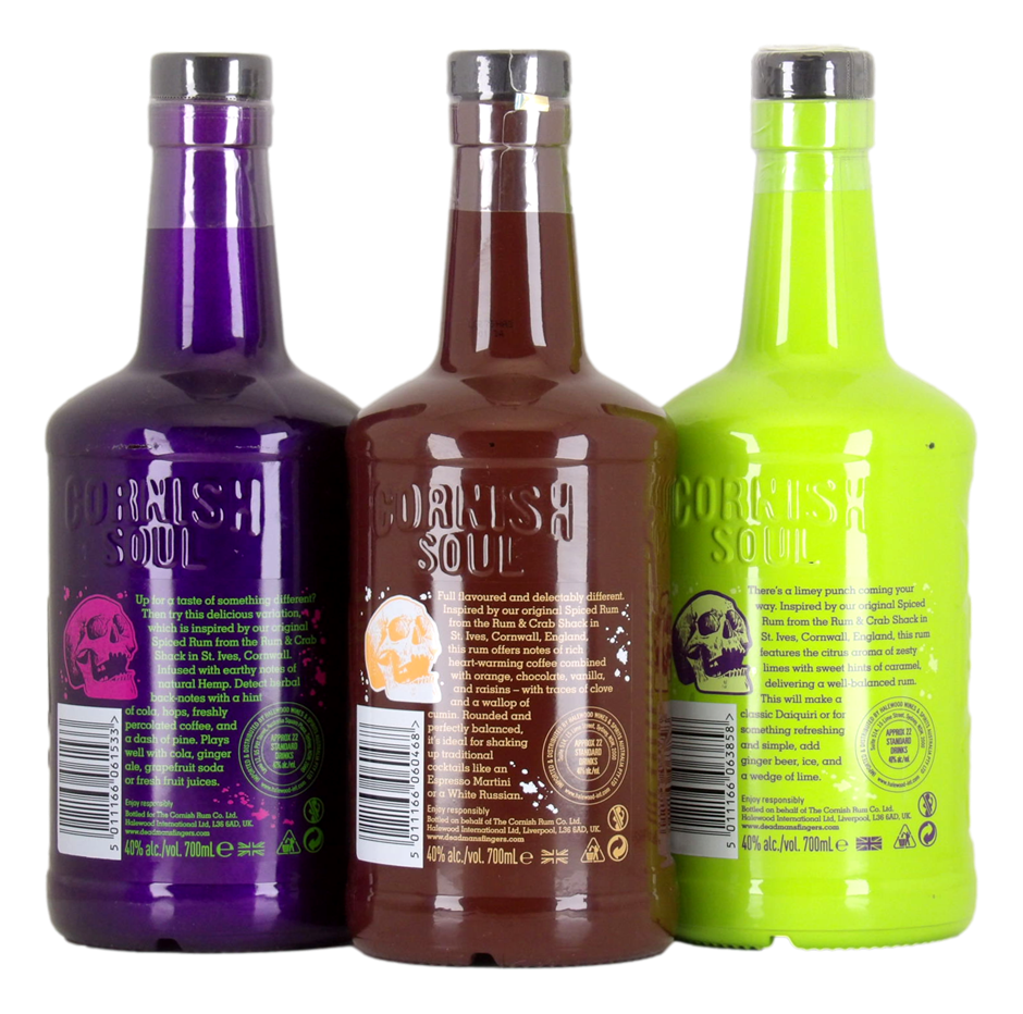 A diverse trio of Dead Man’s Fingers rums, each delivering distinctive flavours.Includes earthy Hemp Rum, rich Coffee Rum, and tropical Mango Rum, ideal for enjoying neat or in cocktails.