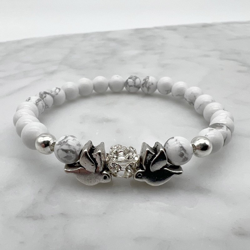 6mm Howlite Gemstone and Rhinestone Dove Bracelet