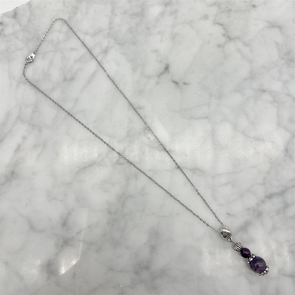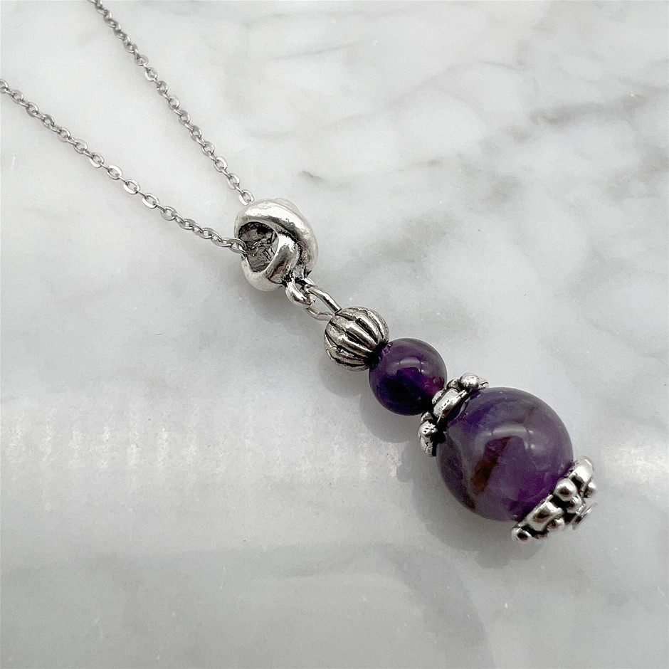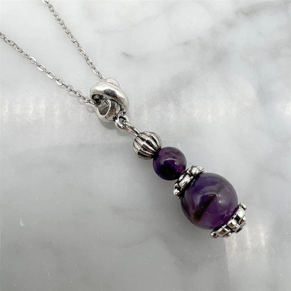 Genuine Amethyst Antique Style Silver & Platinum Plated Pendant Necklace