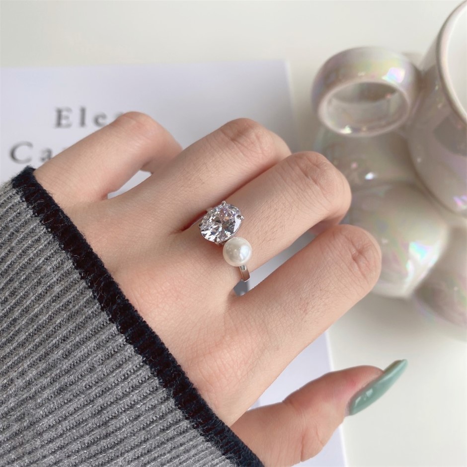 4ct Oval Cut Simulated Diamond & Shell Pearl 925 Silver Ring - Size 8