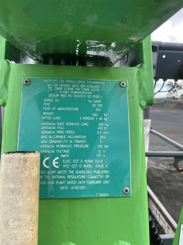 2011 Nifty Trailer Mounted Boom Elevated Work Platform