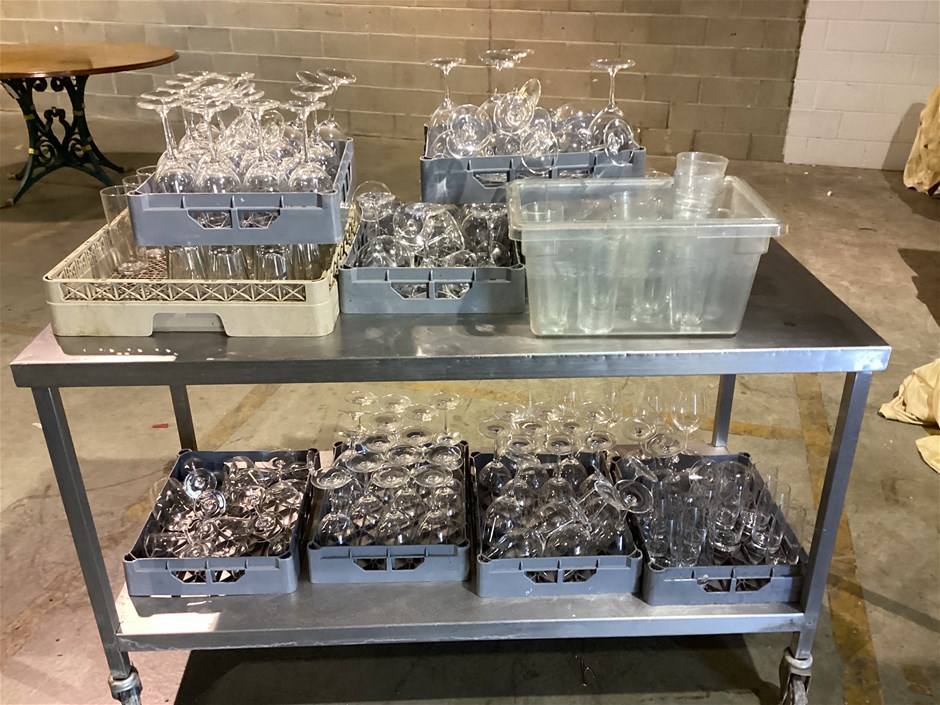 • Includes Wine Glasses, Tumblers, Note: Bench NOT Included, Some Glasses are Branded