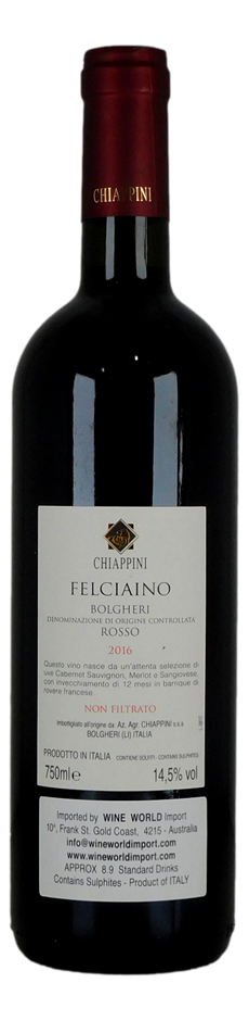 Chiappini Felciaino Bolgheri Rosso 2016 (6x 750mL), Italy.