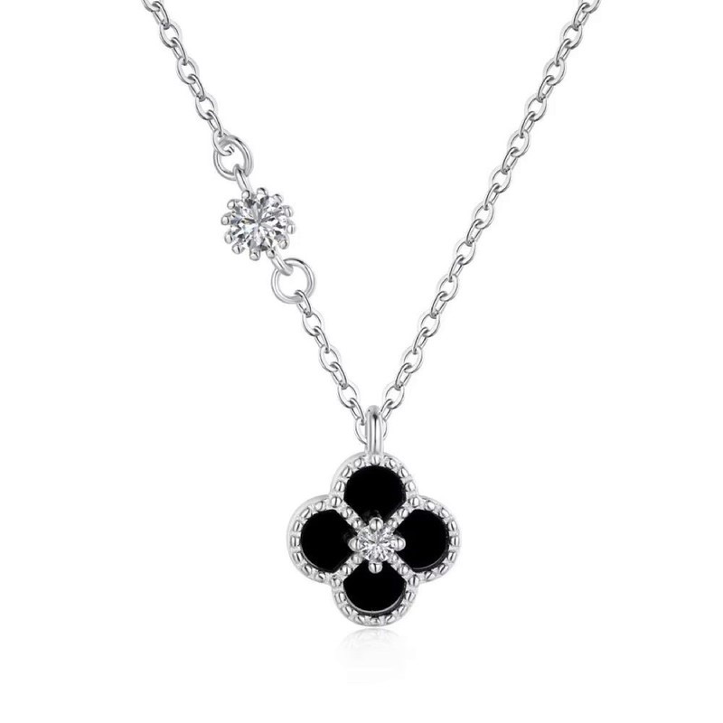 925 Silver Simulated Diamonds Clover Pendant Necklace