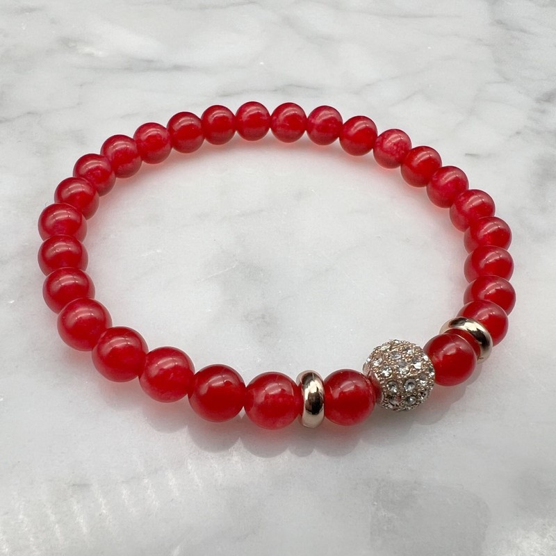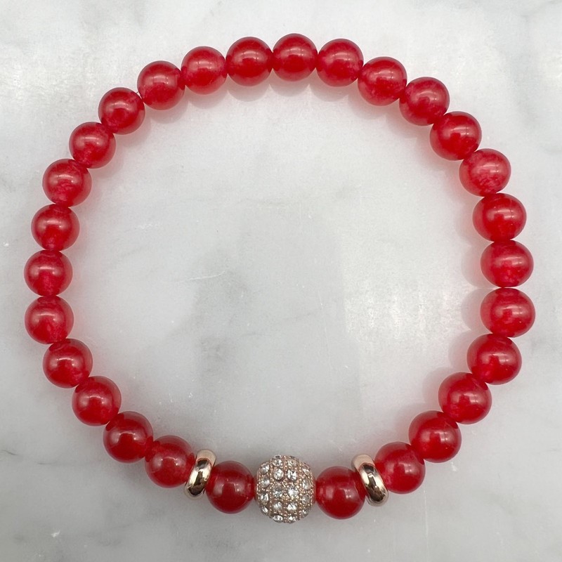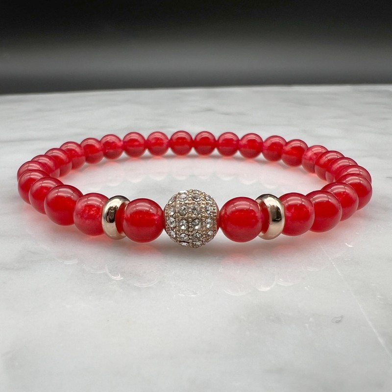 6mm Malaysia Jade Gemstone & Rose Gold Rhinestone Bracelet