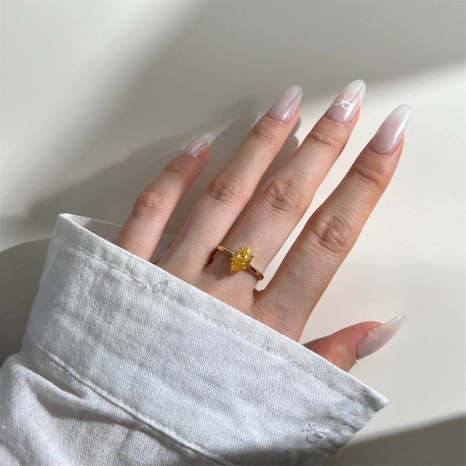 1.5ct Pear Cut Simulated Diamond 18K Gold Filled 925 Silver Ring - Size 8