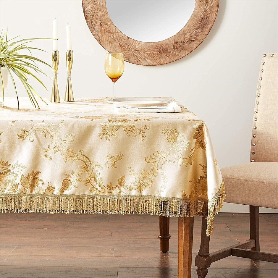 VIOLET LINEN Majestic Damask Design Tablecloth - Beige 54`` x 72``, Oblong/Rectangle. (Code: B00ABOF51E-NE) (139936-33)