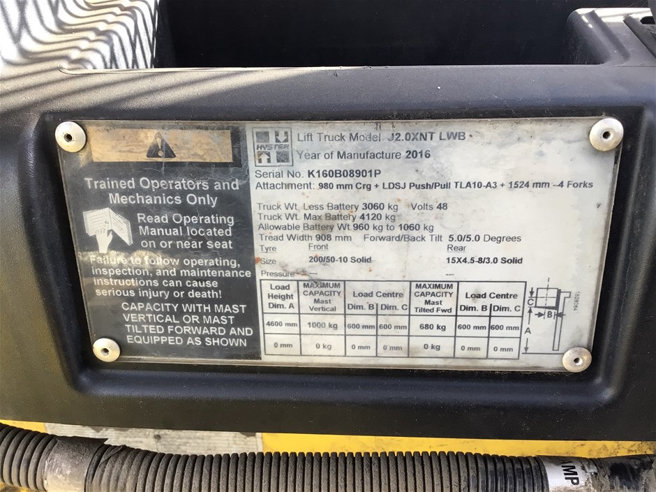 Hyster J2.0XNT LWB 3 Wheel Counterbalance Forklift