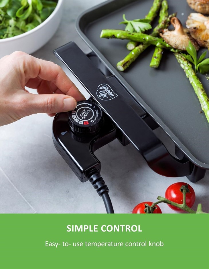 GREENLIFE Teppanyaki Grill Non-Toxic PFAS & PFOA-Free Ceramic Nonstick, 5 Temperature Settings, Quick Even Heating, Large Cooking Surface, Black. (Code: B0F5973S4B) (332388-33)