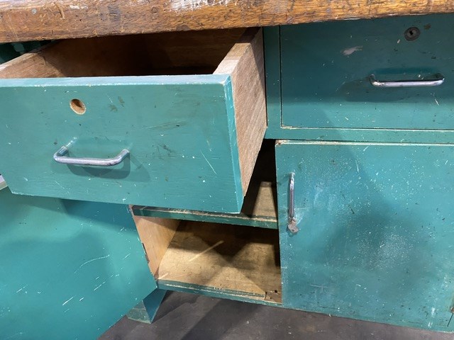 • Consisting of a timber top bench with small vice and power outlet, 240v, comes with small trolley