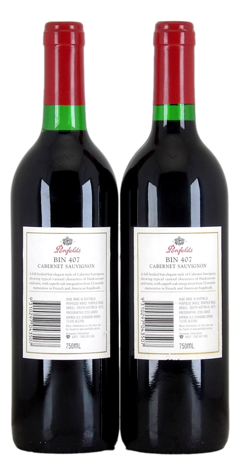 Penfolds `Bin 407` Cabernet Sauvignon 1998 (2 x 750mL) SA.