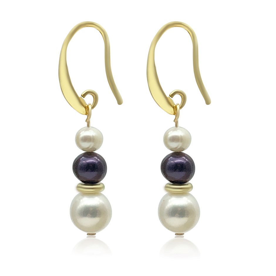 Luxury 6-10mm White & Black Freshwater Pearl with Real 18k Gold Plated Drop Earrings.
