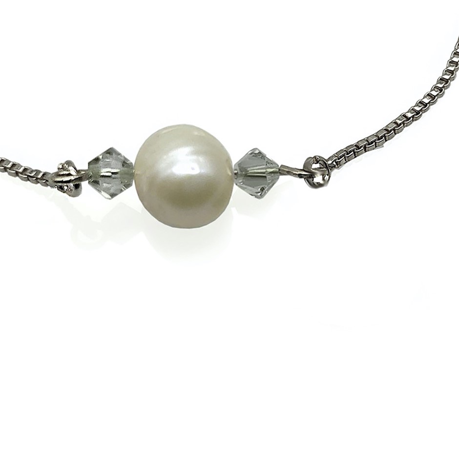Freshwater Pearl Adorned with Swarovski® Crystal Real Platinum Plated Chain with Adjustable Slider Bracelet
