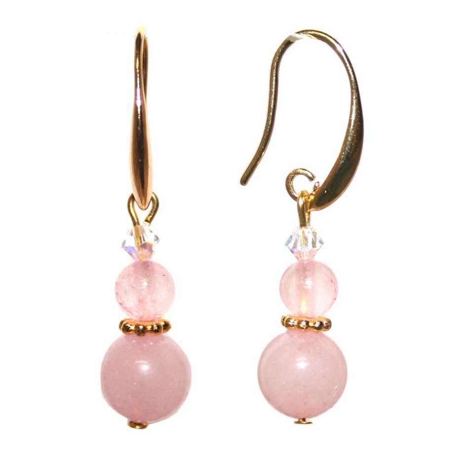 Exquisite Natural Round Rose Quartz Adorned with Swarovski® Crystal Beads Earrings.