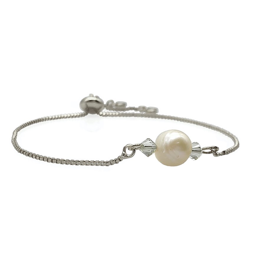 Freshwater Pearl Adorned with Swarovski® Crystal Real Platinum Plated Chain with Adjustable Slider Bracelet