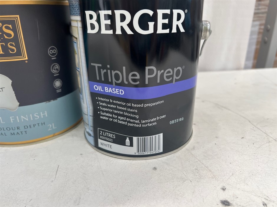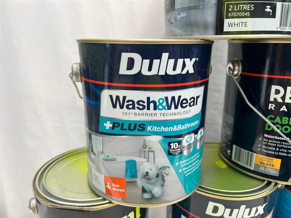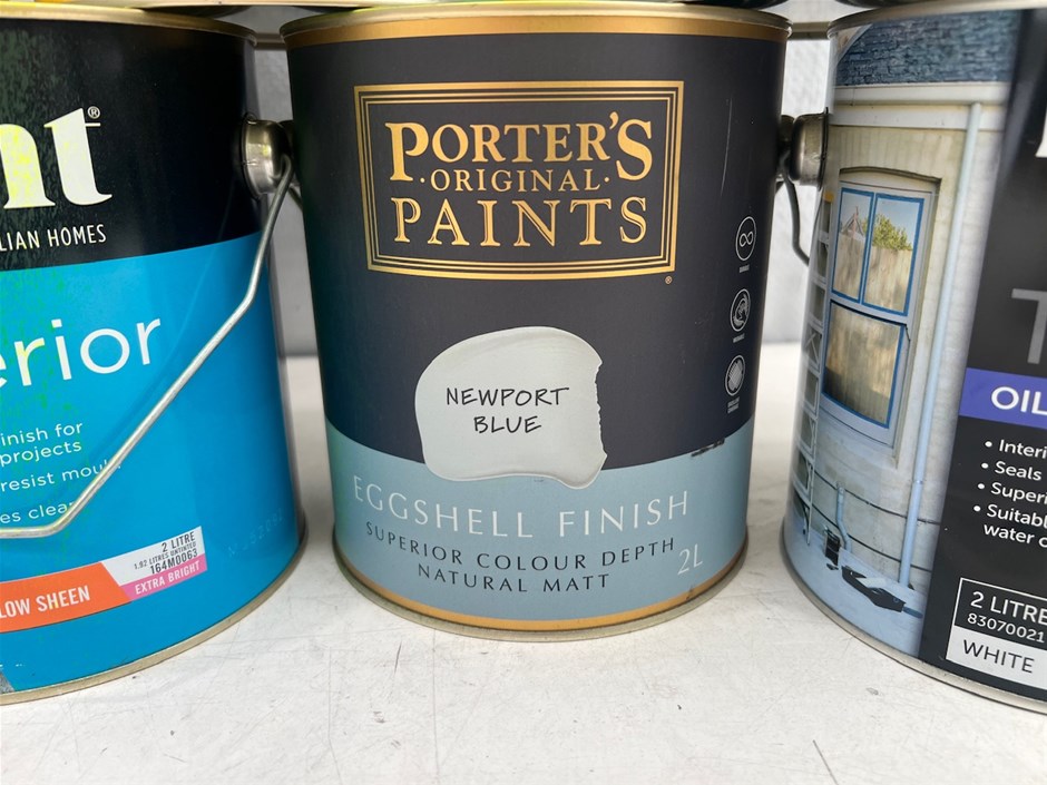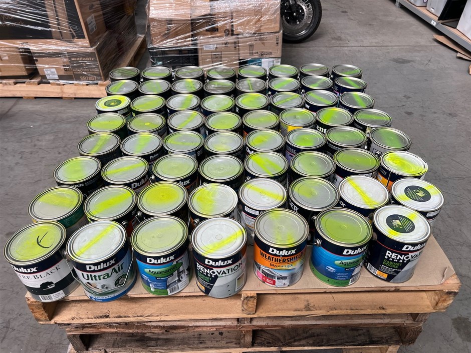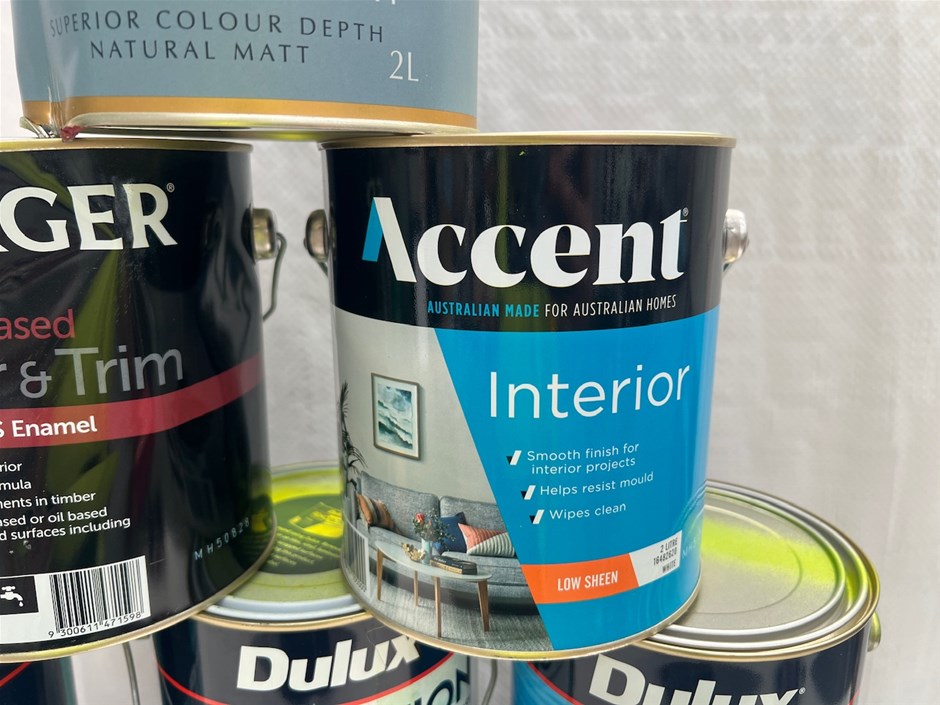 • 63 x 2Lt Tins of Paint. Various Brands, Colours and Finishes.